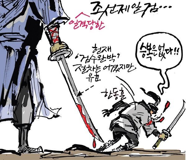□ 중부일보 [최경락 만평] 일격당한 조선제일검…