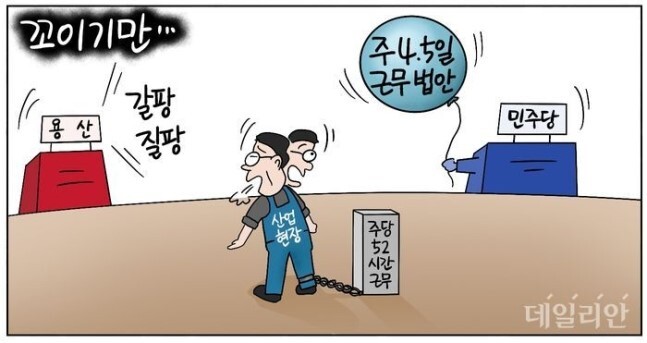 □ 데일리안 [D-시사만평] 월급은 누가 주는데?…포퓰리즘 노동시간 개편은 '꼬이기만…'