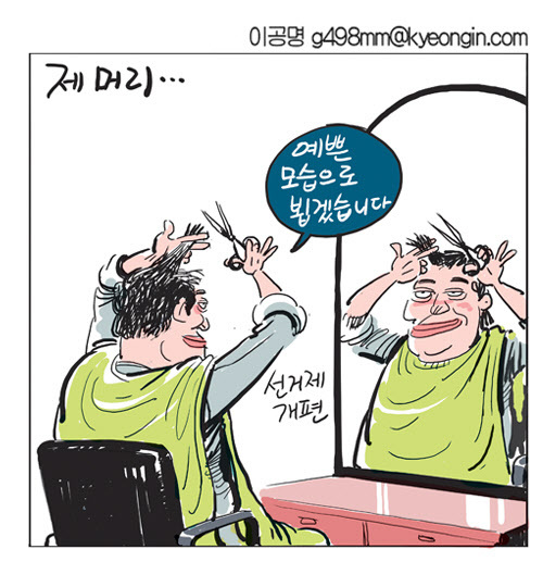□ 경인일보 [경인만평 이공명] 제 머리…