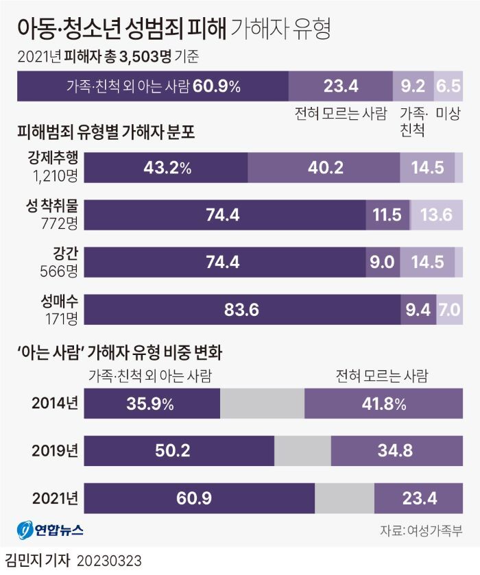 □ 아동·청소년 성범죄 가해자 60.9%가 '아는 사람'