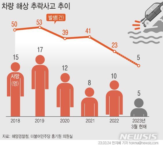 □ 차량 해상 추락사고로 5년 간 62명 사망