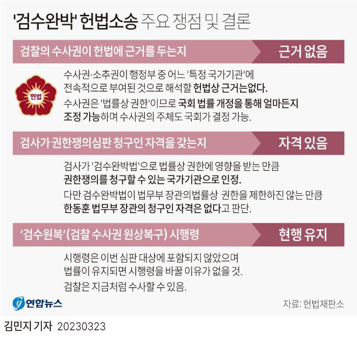 □ '검수완박' 권한쟁의 심판 헌법재판소 결정