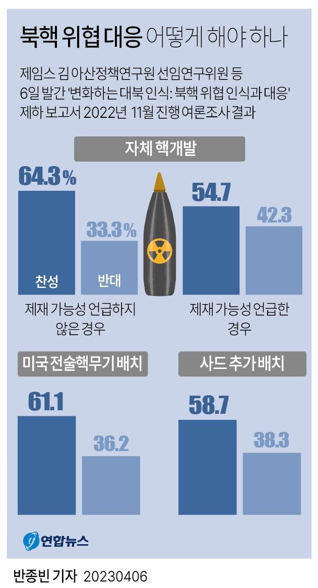 □ 국제사회 제재 언급 있어도 '자체 핵개발' 54.7% 찬성