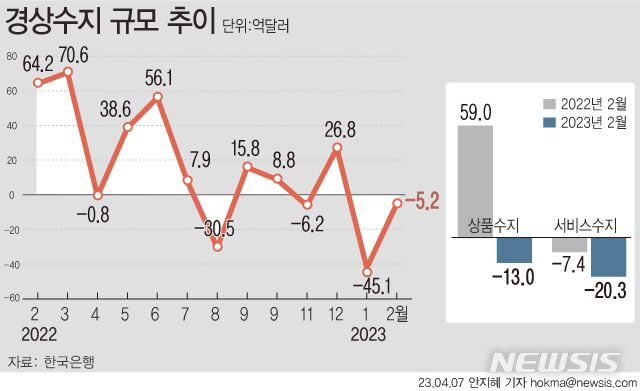 □ 경상수지 두달 연속 적자…1·2월 -47.3억 달러