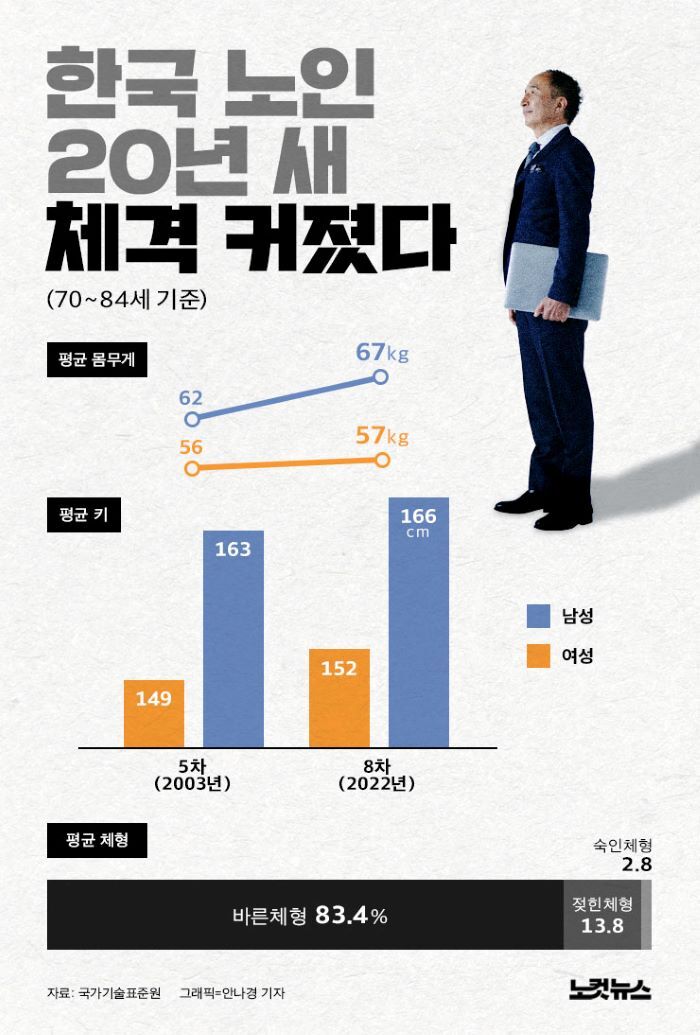 □ 한국 노인 평균 키 20년 새 3cm ↑