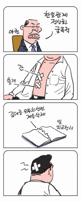 □ 굿모닝충청 [서라백 만평] 임시정부 수립 104주년, 낯부끄런 굴욕외교에 통탄만