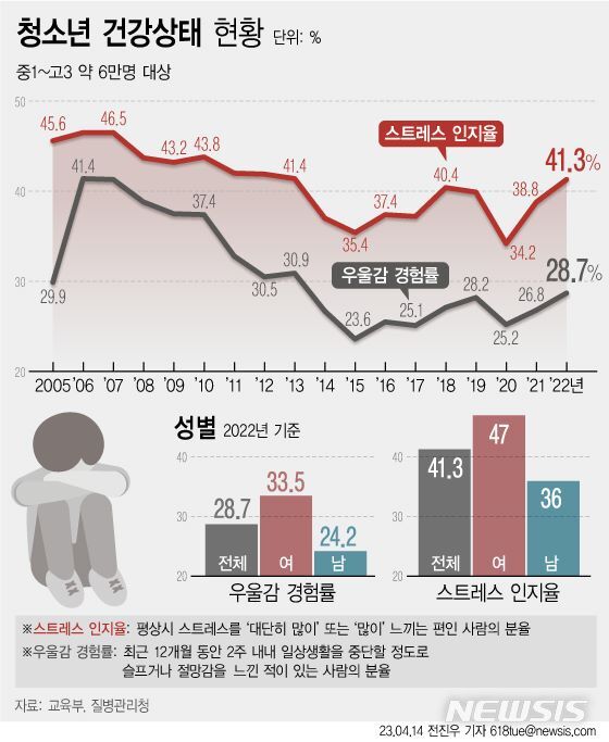 □ 청소년 10명 중 3명 '우울·절망감'을 느낀다