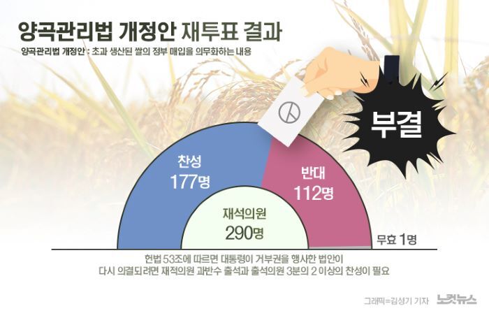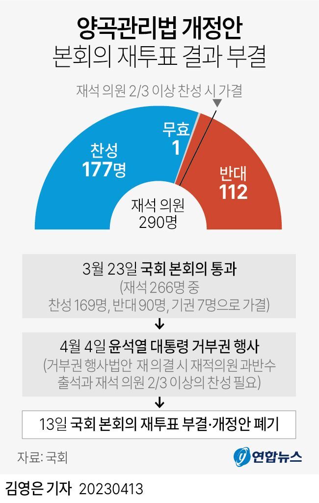 □ 양곡관리법 개정안 본회의 재투표 결과 부결