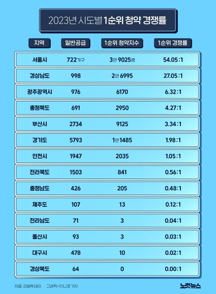 □ 올해 1순위 청약 경쟁률 5.95대 1