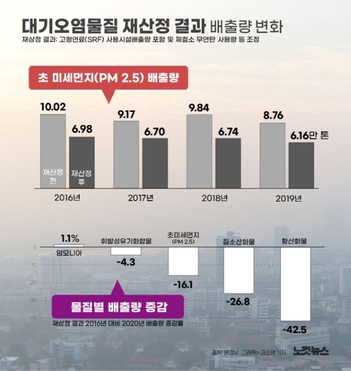 □ 대기오염물질 배출량 재산정했더니…초미세먼지 1만1천t 줄어