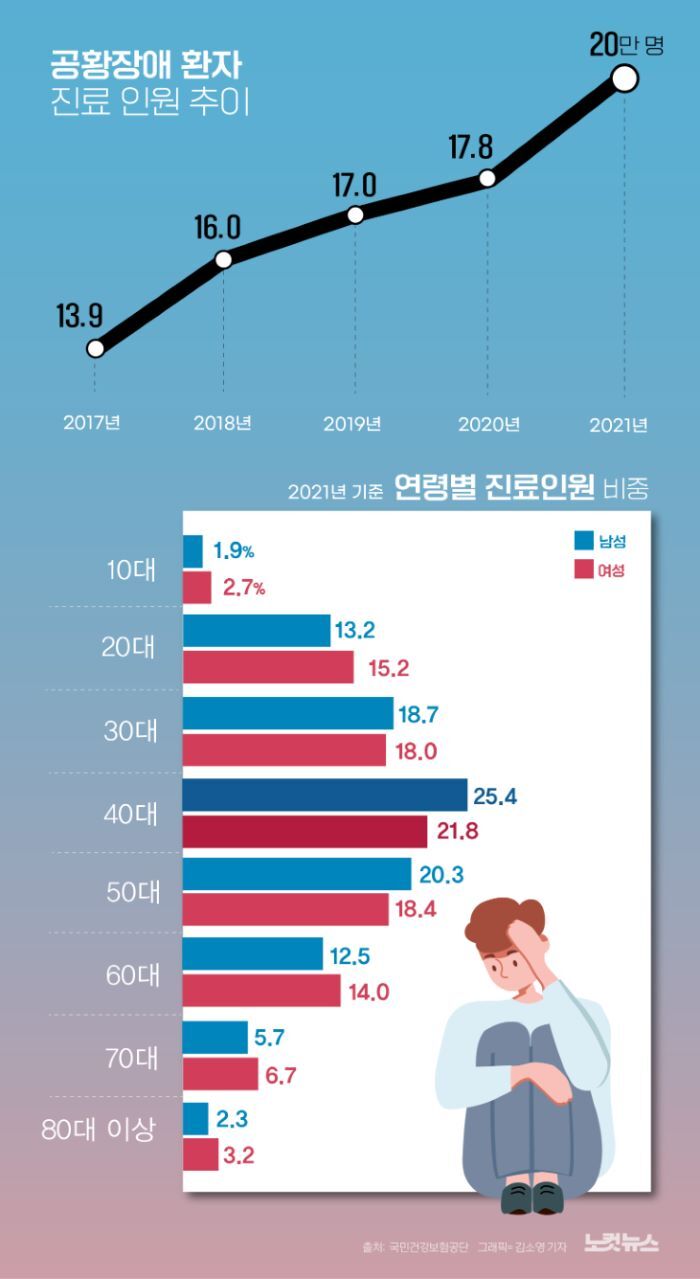 □ 공황장애 환자 20만 명 넘어…40대 23.4%로 최다