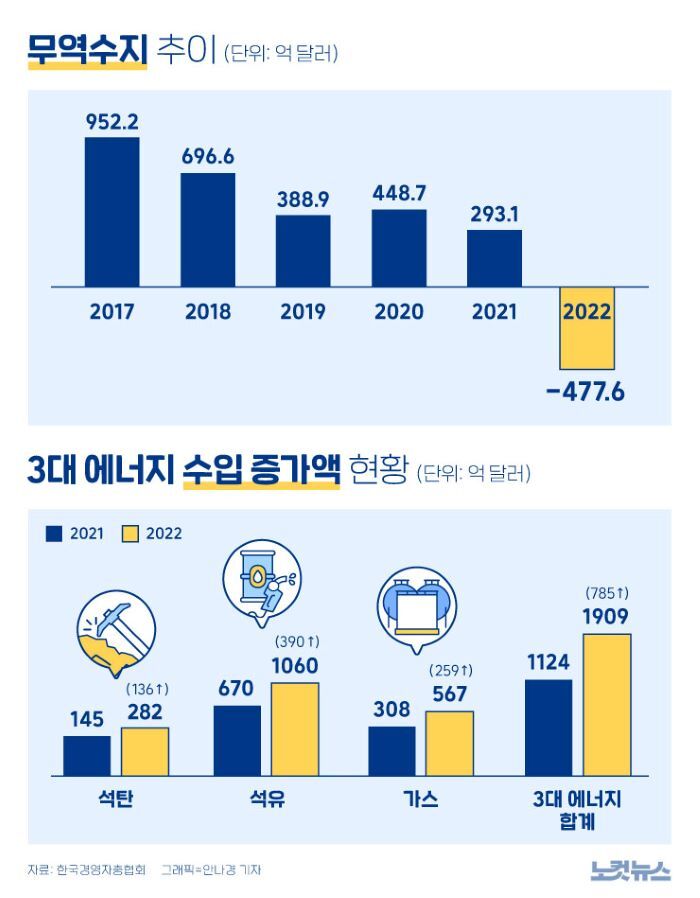 □ 지난해 무역적자, 높아진 에너지 수입단가가 주도