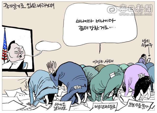 □ 민중의소리 [최민의 시사만평] 무릎 꿇어!