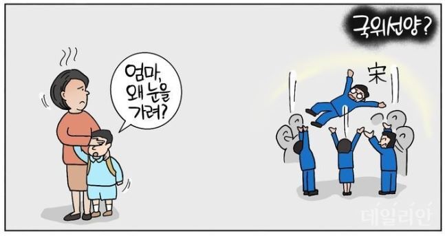 □ 데일리안 [D-시사만평] 송영길 '영웅?' '청렴?' '떳떳?'…범죄혐의 미화에 애들이 배울라?
