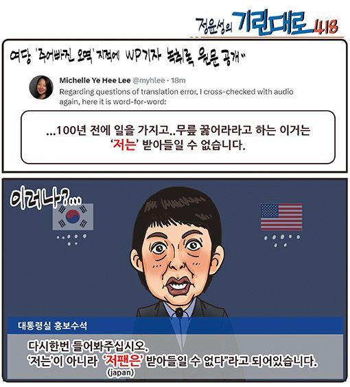 □ 전북일보 [정윤성의 기린대로418] WP기자, 尹 '일본 무릎' 주어·오역 논란에 인터뷰 원문 공개...