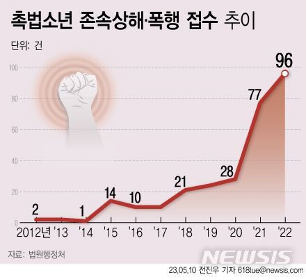 □ '촉법소년 패륜 범죄' 폭증...2014년 1건→2022년 96건