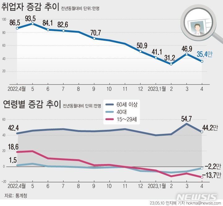 □ 4월 취업자수 35.4만명 증가…고용률 62.7%