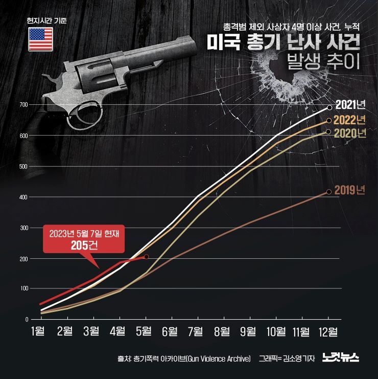 □ 올들어 발생한 美 총기 난사 사건 총 205건