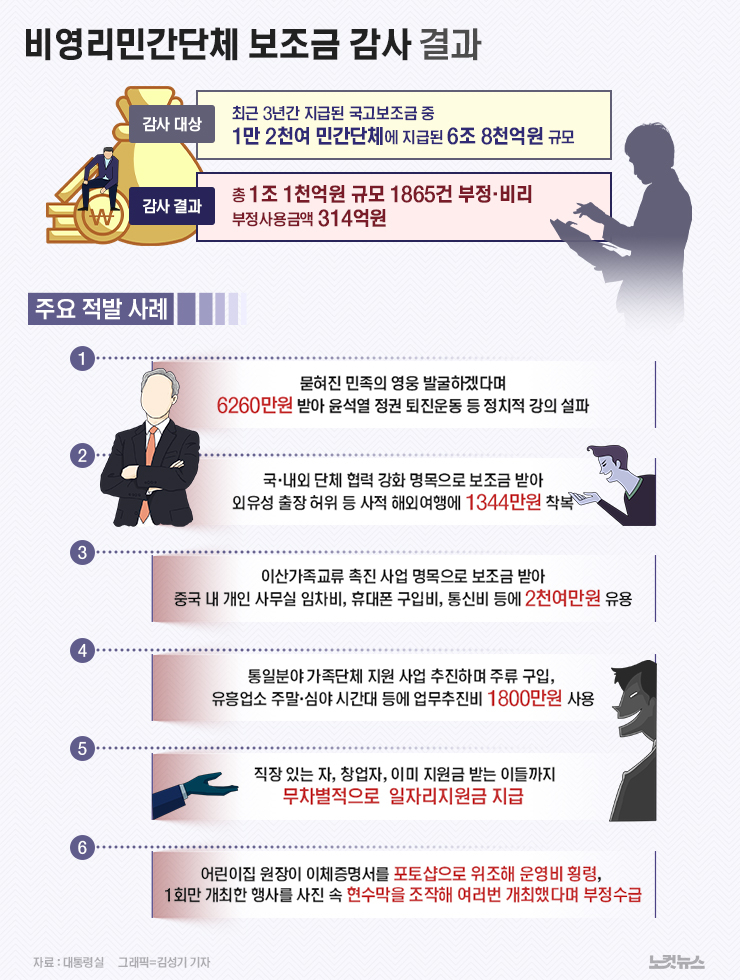□ 민간단체들 국가보조금 부정 사용…유흥업소 이용·포토샵 조작 등