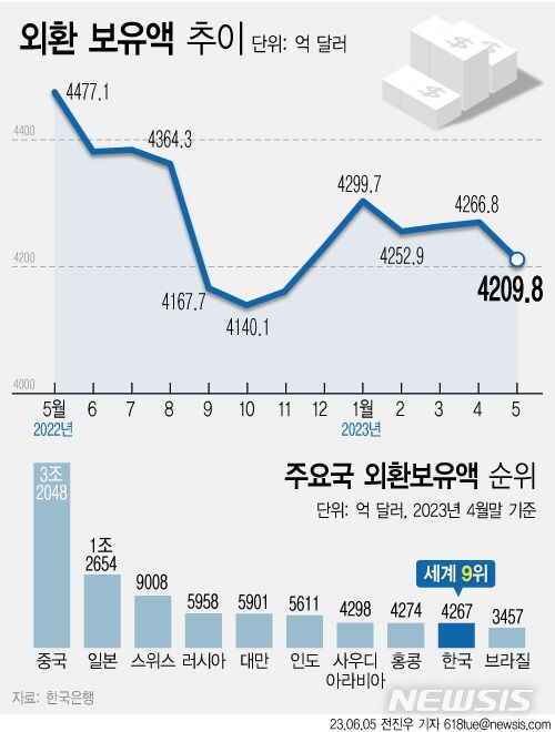 □ 5월 외환보유액 57억 달러 ↓ ...석 달 만에 감소 전환