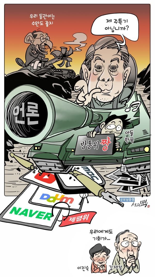 □ 굿모닝충청 [서라백 만평] 이동관 지명, '방통통신위'냐 '방송장악위'냐
