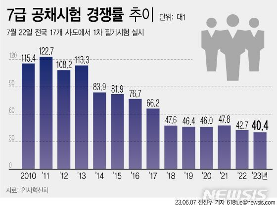 □ 국가공무원 7급 공채 경쟁률 40.4대1...지난해보다 하락