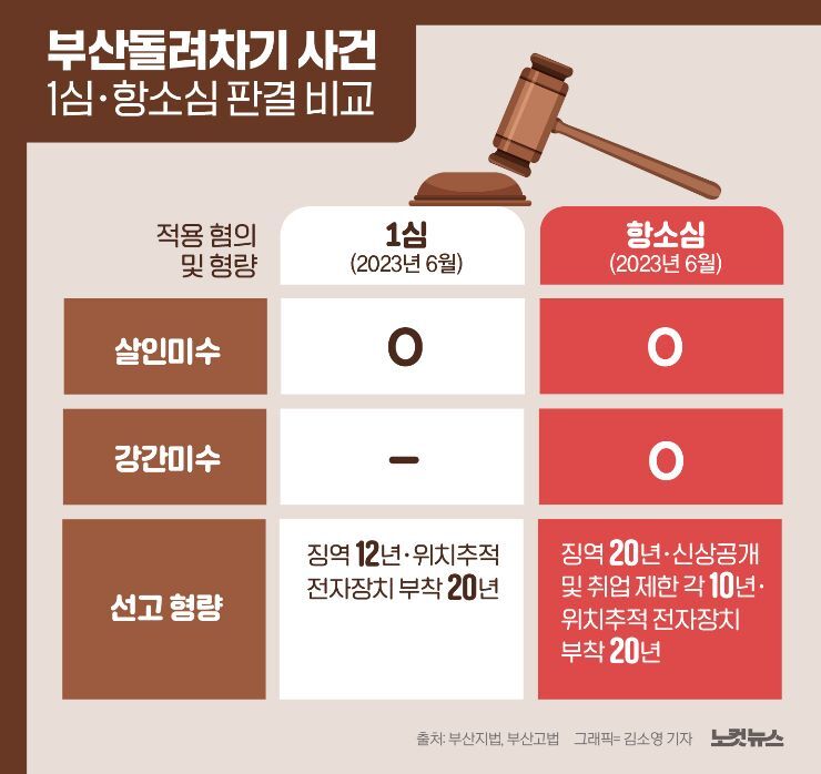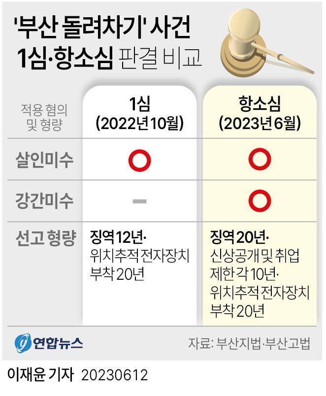 □ '부산 돌려차기' 사건 1심·항소심 판결 비교