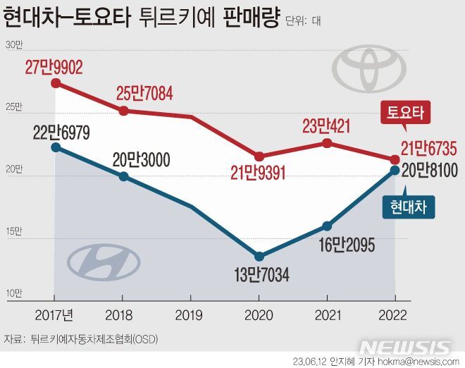 □ 올해 1~4월 현대차 튀르키예 판매량, 토요타 넘었다