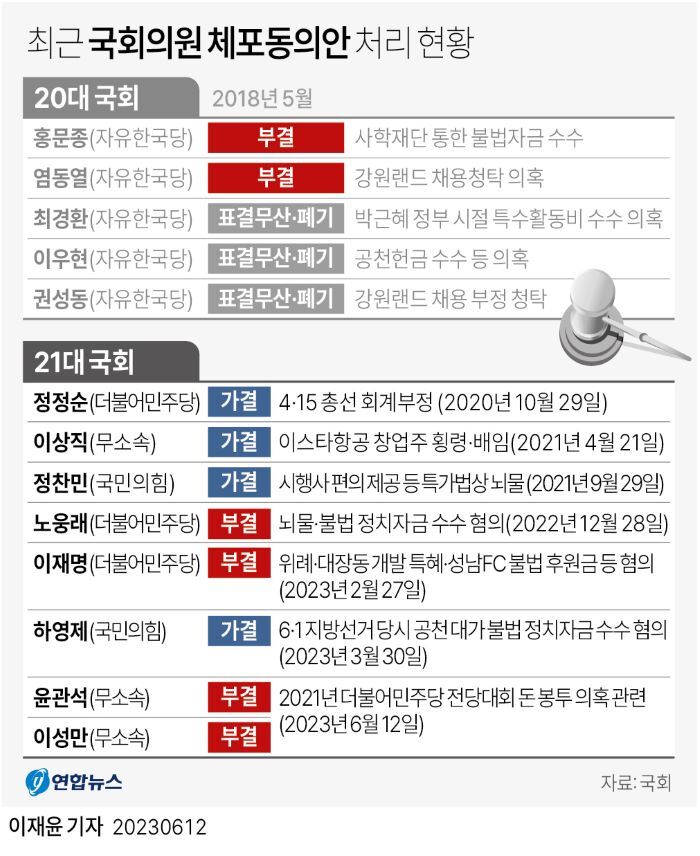 □ '돈 봉투 의혹' 윤관석·이성만 의원 체포동의안 부결