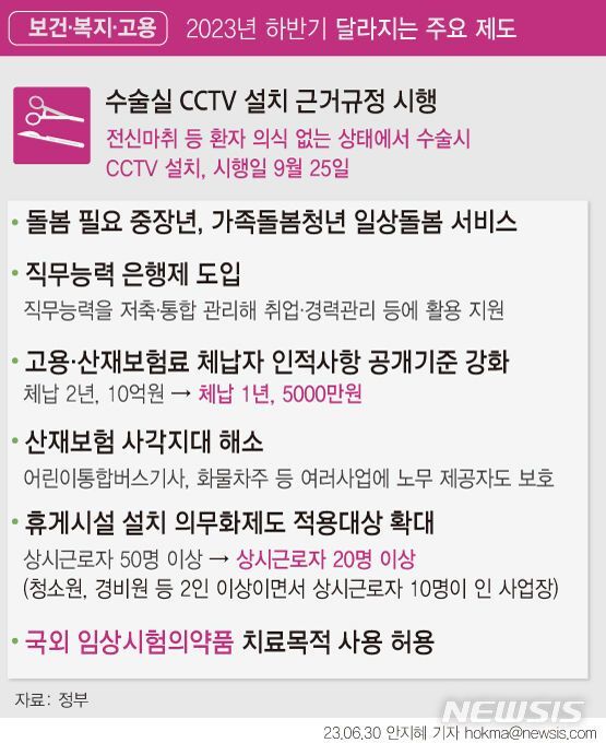 □ 전신마취 수술 CCTV 의무화...여러곳 일하는 노동자 산재 적용 [하반기 달라지는 것]