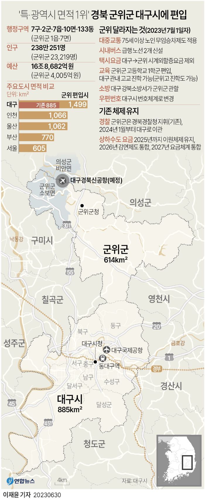 □ '특·광역시 면적 1위' 경북 군위군 대구시에 편입