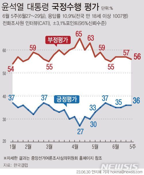 □ 윤석열 대통령 국정수행 평가 36% 긍정