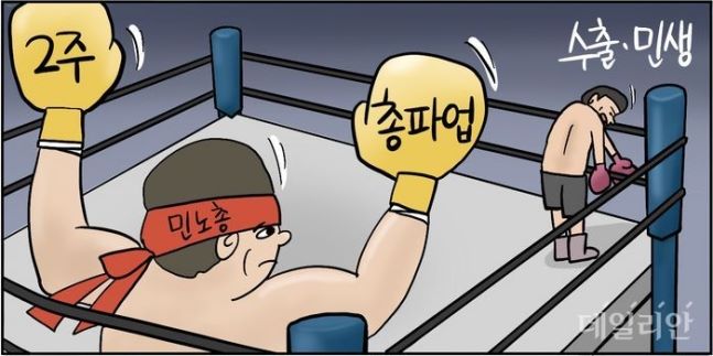 □ 데일리안 [D-시사만평] 민노총 2주간 총파업 돌입…정치파업에 나라가 죽든 기업이 죽든 난 몰라라