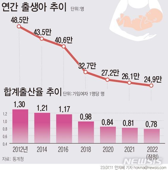 □ 10년간 0.52명 줄었다...합계출산율 0.78명