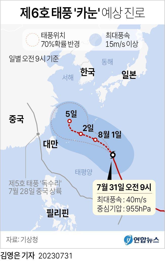 □ 제6호 태풍 '카눈' 예상 진로(종합)