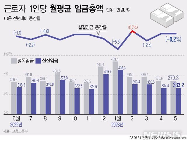 □ 5월 실질임금 333.2만원...전년 대비 0.2% ↓