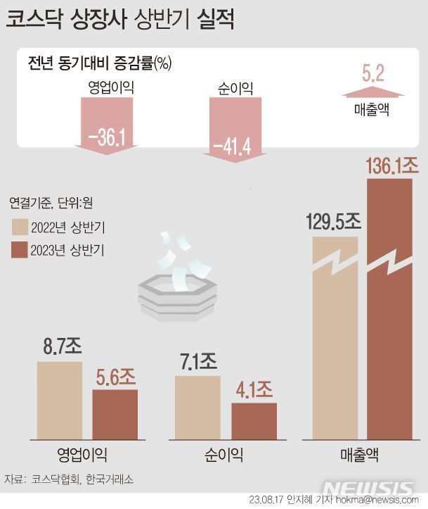 □ 코스닥 상반기 영업익 5.6조 ...전년比 36.1% ↓