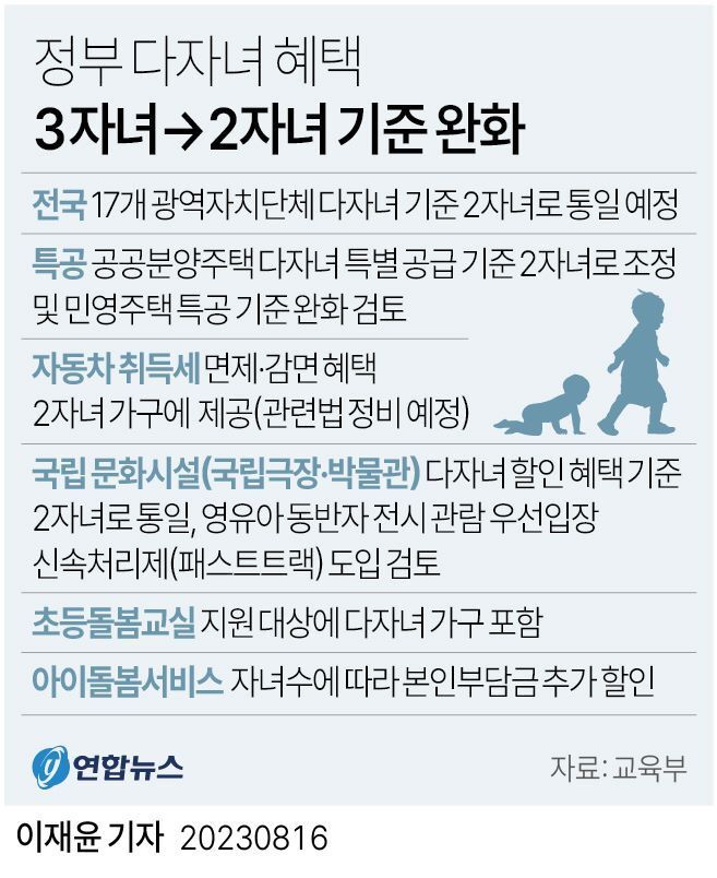□ 정부 다자녀 혜택 3자녀→2자녀 기준 완화