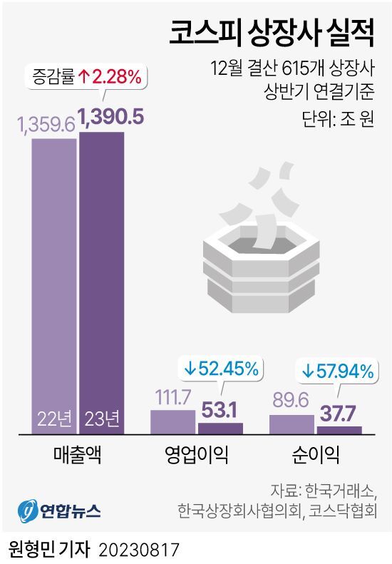 □ 코스피 상반기 영업익 반토막...순이익 57.49% ↓