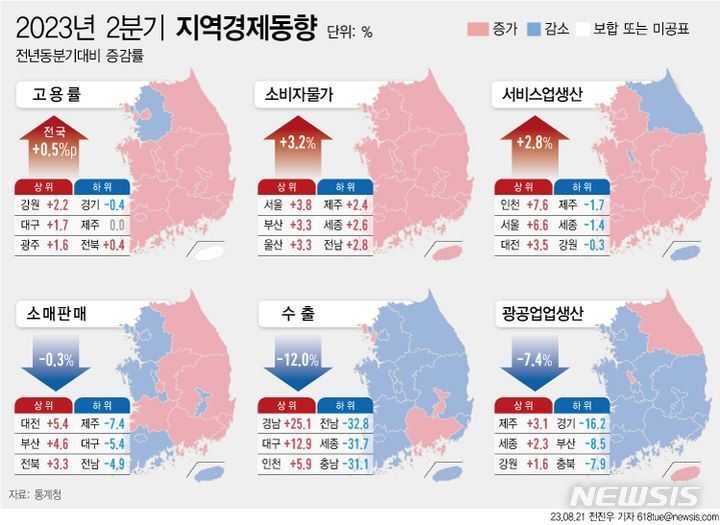□ 서비스업생산 9분기 만에 최저...세종·강원·제주 '마이너스'