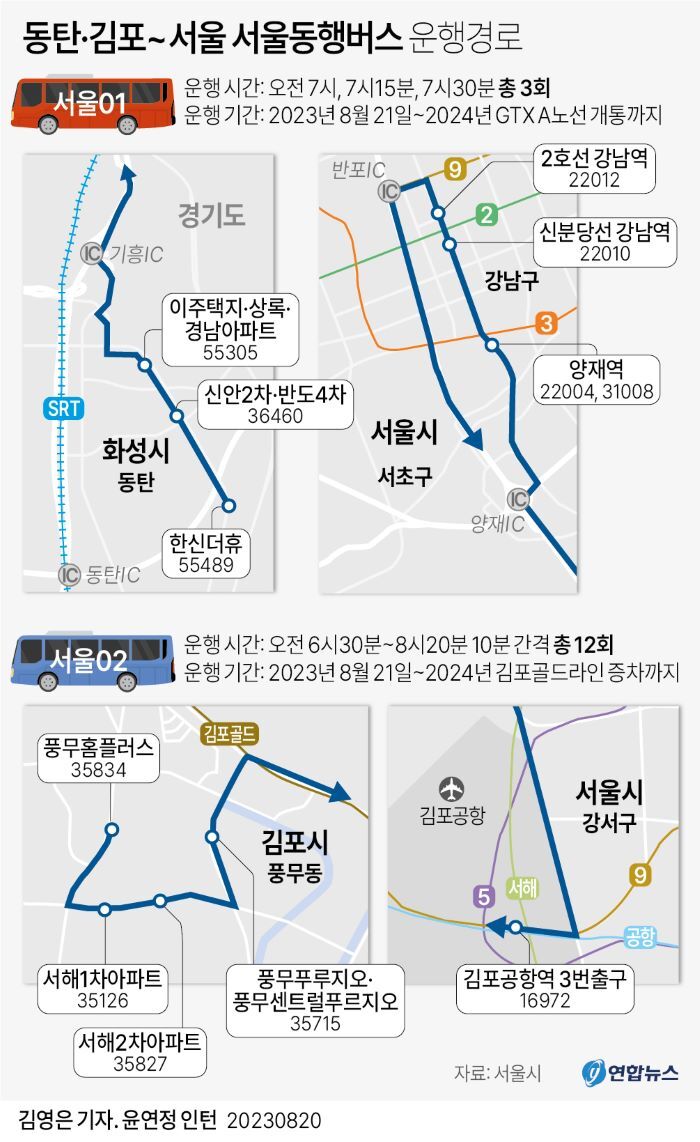 □ 동탄·김포~서울 서울동행버스 운행경로