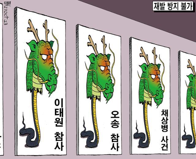 □ 굿모닝충청 [서라백 만평] 박정희는 추도, 이태원 희생자는 외면