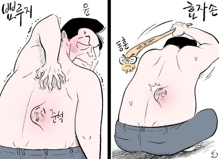 □ 아시아경제 [오성수의 툰] 뾰루지와 효자손