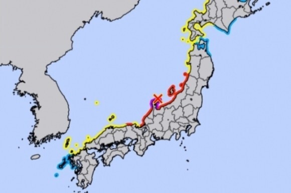 ▼또 일본 쓰나미 경보 발령 범위에 독도 포함... 2022년 1월 쓰나미 경보에도 독도를 경보 발령 지역으로 포함한 적 있다고