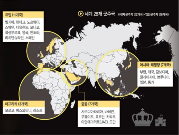 ▼왕이 있는 군주국, 세계 28개국