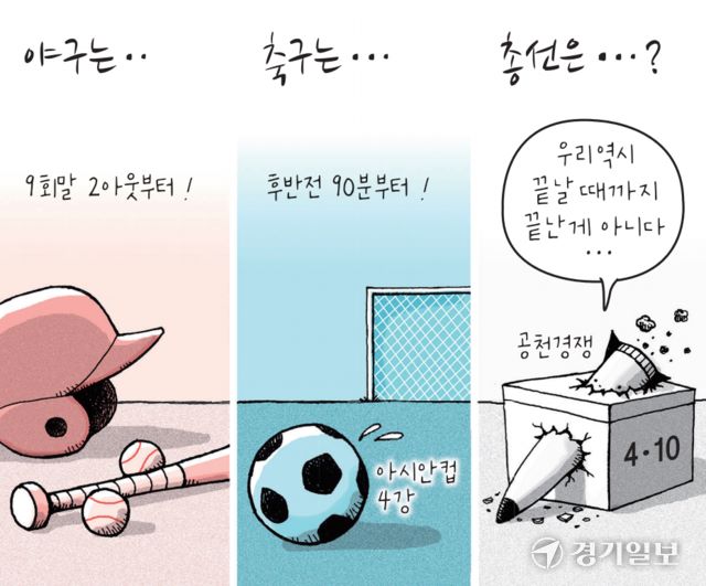 □ 경기일보 [경기만평] 야구는..축구는...총선은...?