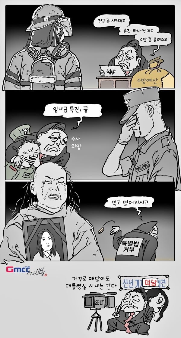 □ 굿모닝충청 [서라백 만평] 그들이 죽음을 대하는 방식