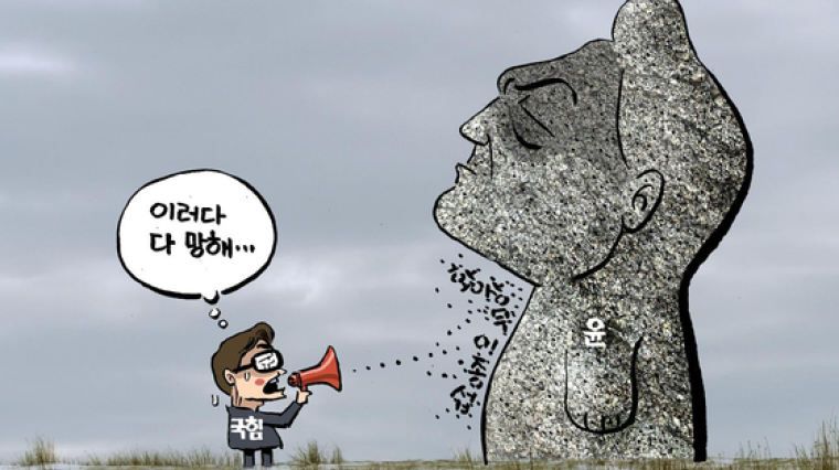 □ 데일리안 [D-시사만평] 국힘 '에휴~' 갈 길은 먼데…용산발 리스크 '이종섭·황상무' 논란에 무심