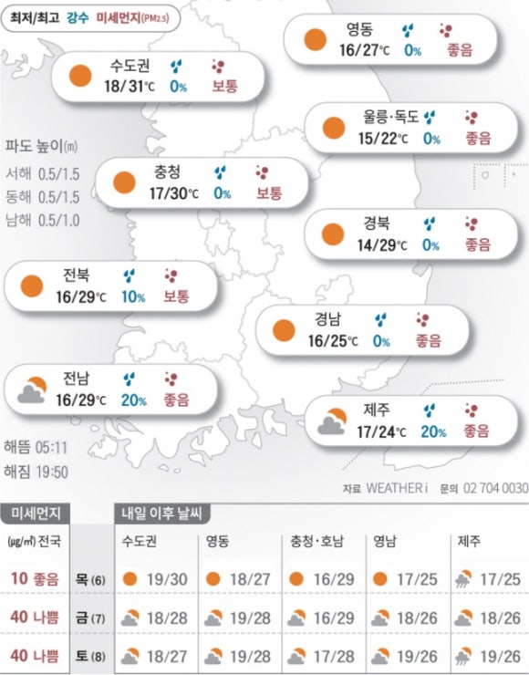 1. 올들어 서울·수도권 처음 30도 넘어 → 오늘(6.5일) 서울 낮 기온 최고 31도.