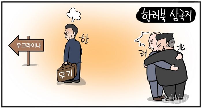 □ 데일리안 [D-시사만평] 북러 조약에 '우크라이나 무기 지원 재검토' 맞불? 한러북 삼국지